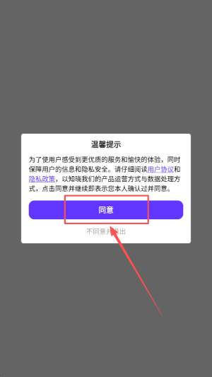 1、点击同意按钮以进入应用,确保您接受所有相关的使用条款,顺利开始操作。
