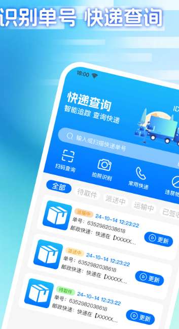 1、支持用户拍照以识别相关物流包裹,让您只需点击一下即可识别单个编号和相关货件。