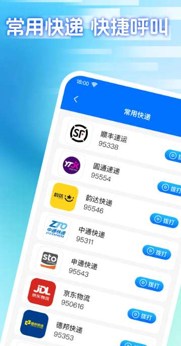 2、这使得用户可以方便地快速拨打他们需要的常用快递公司的电话,让您能够快速拨打快递公司的电话号码,轻松拨打电话。