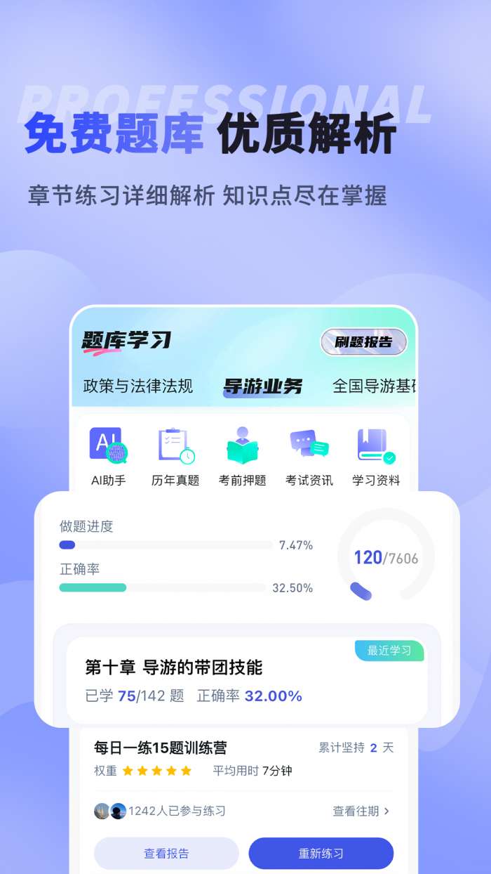 1、导优优导游资格证考试备考神器,精准题库、面试练习、导游词、优质课程,助你高效学习,轻松考取导游证。