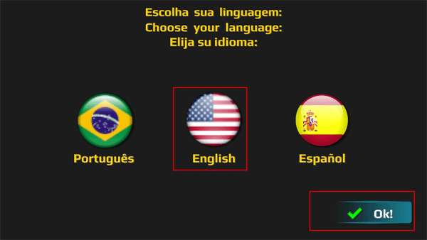 1、打开游戏,会有三个按钮代表三个国家的语言,点击English,然后点击OK。