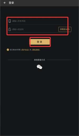 4、输入注册手机号码并获取短信验证码,填写后即可完成登录操作。