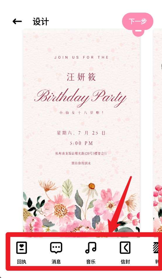 5、设计界面可添加音乐、留言、信封等互动内容,增强请柬表现力。