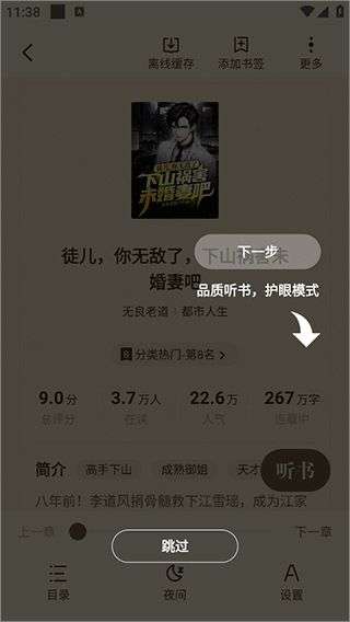 3、app上所有小说点击即可免费阅读,还提供听书模式。