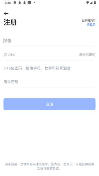 3、输入要注册的邮箱、验证码、密码等信息,即可注册成功