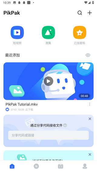 4、来到首页,根据短视频、图集、已加星标等来筛选已上传的文件