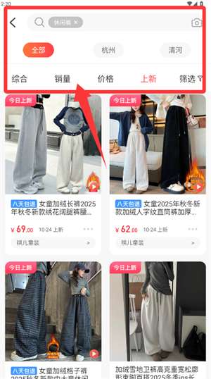 2、搜索商品后可按销量、价格等多维度条件筛选结果。