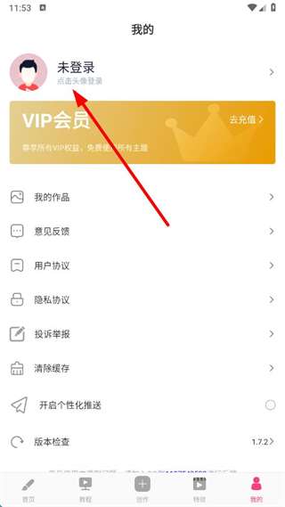 2、在个人中心界面,点击未登录区域的头像,进入登录方式选择界面。