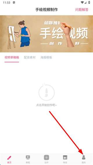 1、在手绘视频制作首页,点击右下角我的按钮,进入个人中心界面。
