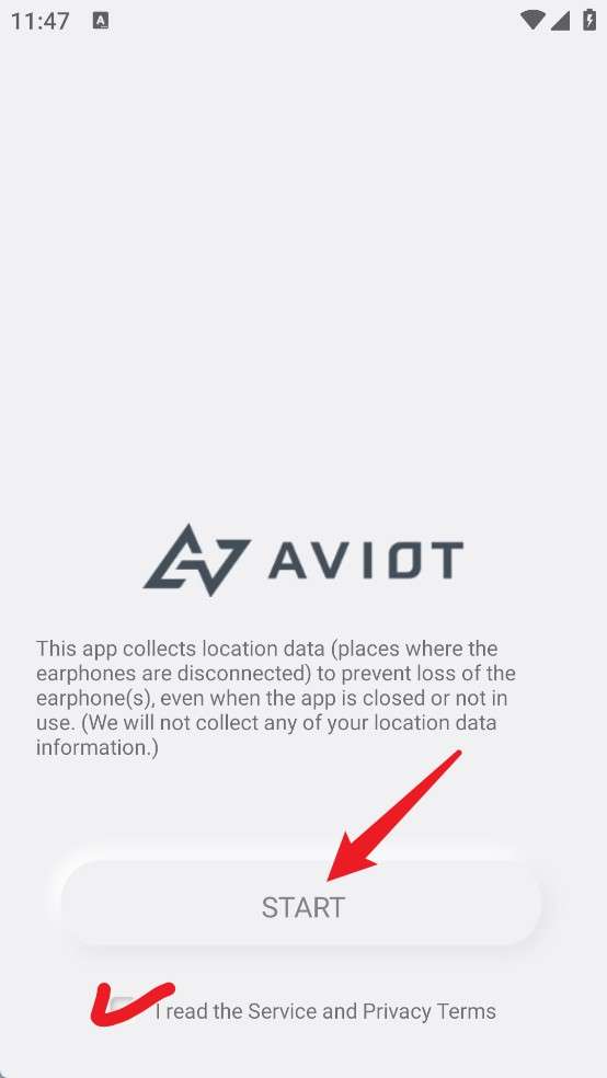 1、打开应用后,阅读并勾选底部的服务协议条款,再点击“START”按钮以进入系统主页面。