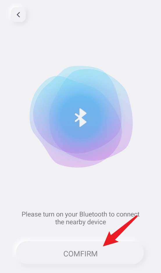 3、进入蓝牙连接界面,请先开启手机蓝牙,再点击页面底部的“CONFIRM”按钮继续配对。