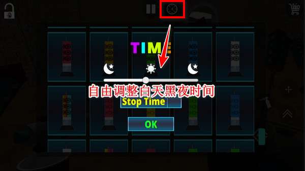 6、点击上方的时钟按钮,还可以自由调整地图的白天黑夜时间,最好的放烟花氛围当然是深夜啊!