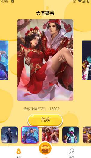 发现皮肤需要一定量的矿石才能合成,所以玩家需要前往夺宝界面挖矿。