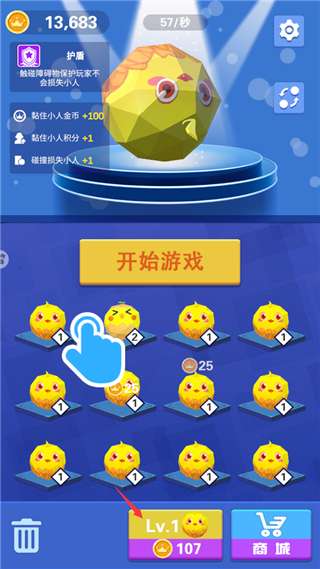 3、点击移动球球获得升级的球球,可以帮助你获得更多的金币。