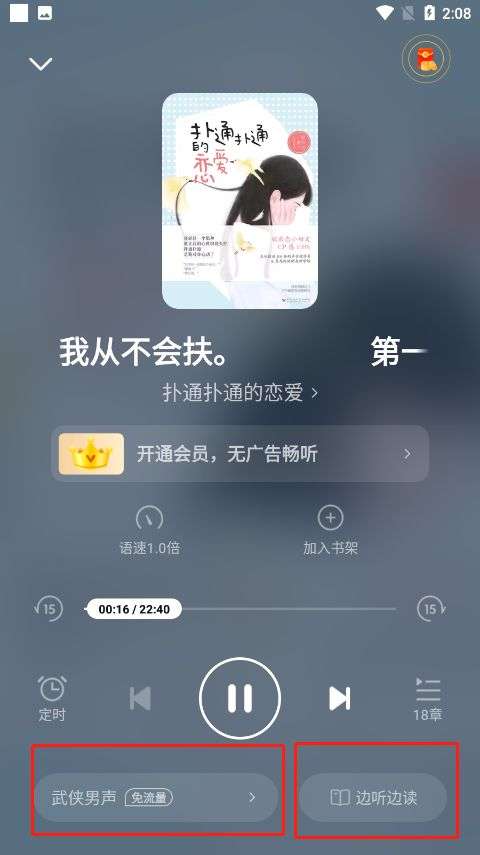 3、接下来你便可以进入听书界面,这里有边听边读的功能,还可以切换阅读声音。
