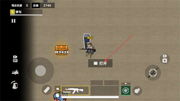 3、靠近物资点后,点击打开按键可以搜索物资点内的物资。