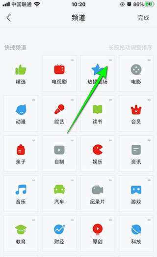 4、点击频道右上角的“-”删除或隐藏频道。