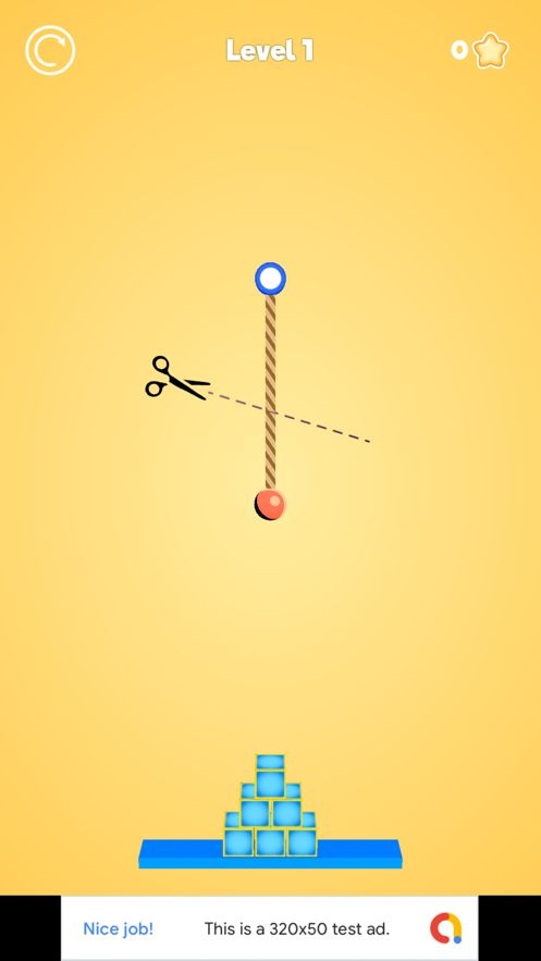 绳索吊杆游戏中通过剪段绳子,然后让悬挂的物品以物物物理运动轨道自动向下掉落砸中玻璃方块。下方的物品是游戏随机设计摆放的只要剪断绳索,让它下坠砸中,这些物品就可以了。游戏的背景元素设置有很多,比方说不同的纯色系颜色,绿色,橙色,紫色,黑色,灰色等等。完成挑战之后,可以得到关卡的星星奖励,会根据你的完成百分比来赠送星星,有三颗星,两颗星,一颗星奖励数量不等。