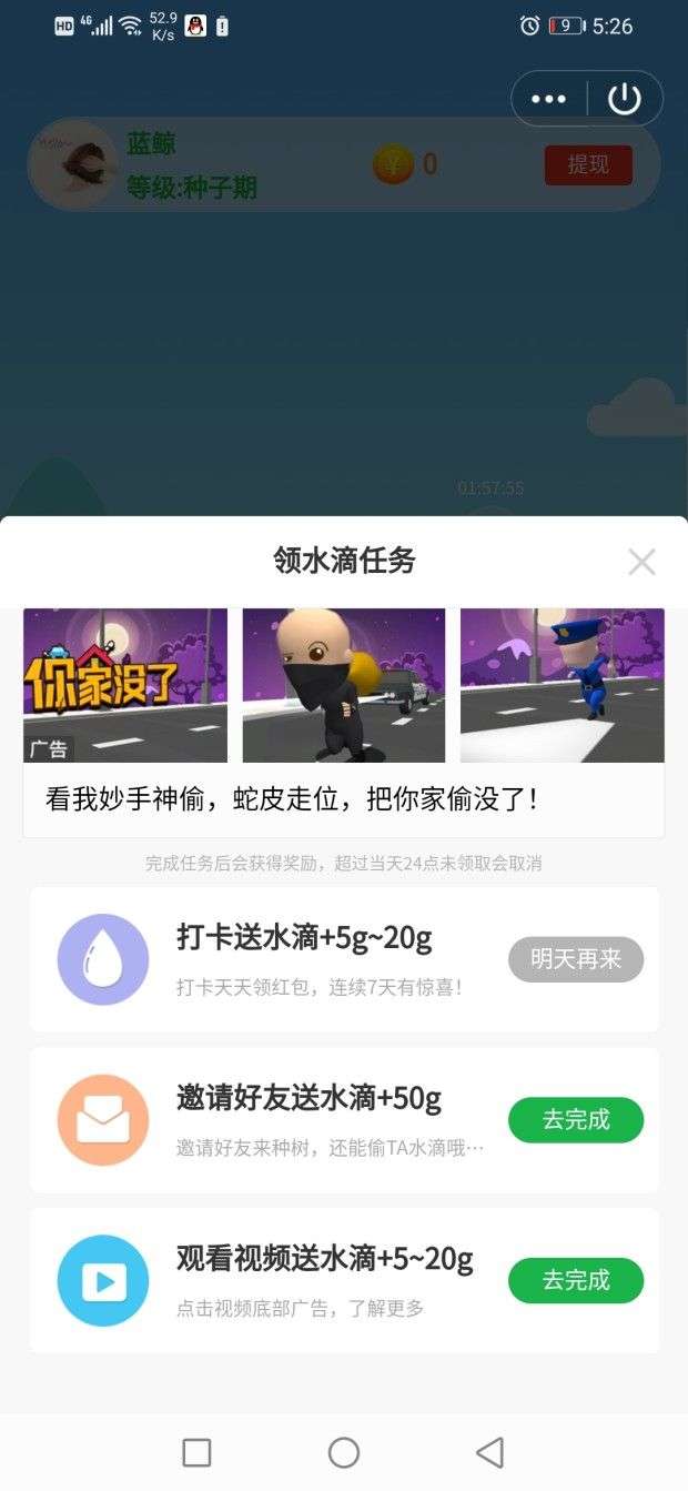 3、这里面的操作很简单,再就是参与里面的小游戏任务,或者是邀请好友,可以每天获得额外的水滴奖励。