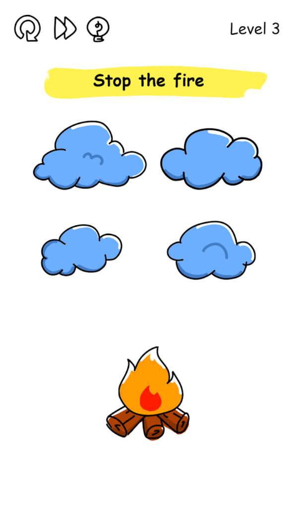 1、怎样答题呢打个比方问题中需要里把火浇灭,但是没有水,上方是有云朵,正确的操作就是移动云朵合成一个大乌云就会有雨水了;