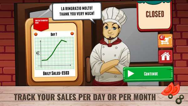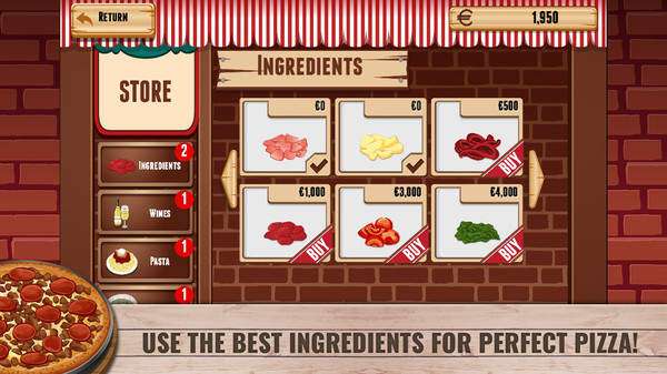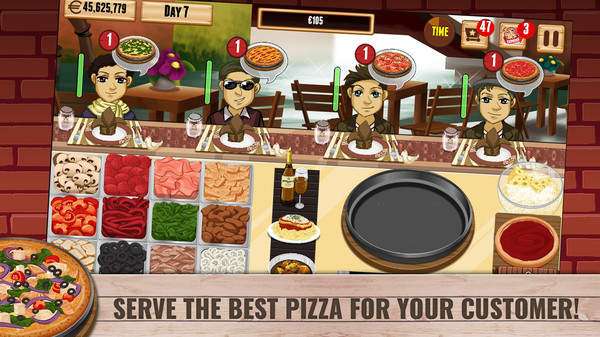 1.玩家根据客人的需求制作所需的披萨,让他们外带走即可赚取金钱。