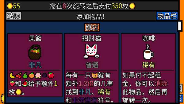 幸运房东是一款非常有意思的一款休闲像素角色扮演游戏,玩家将以新颖的拉霸老虎机的方式游玩,玩家将会通过老虎机来赚取房租和抵制资本主义,非常适合用来消磨时间,游戏拥有着非常多独特的流派,非常好的可玩性!