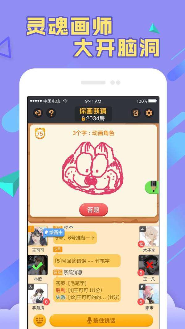 《你画我猜》是一款十分好玩的互动绘画游戏,在你画我猜游戏中,感受强大的脑洞与欢笑!与众多玩家一起体验别样的互动,娱乐的同时轻松交友,嗨到停不下来,赶紧来下载游戏试试吧!