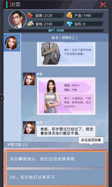 打造商业帝国,怎能孤身一人?员工系统将让你招募业界精英,培养员工、提升实力,为你营造创建新一代商业神话。