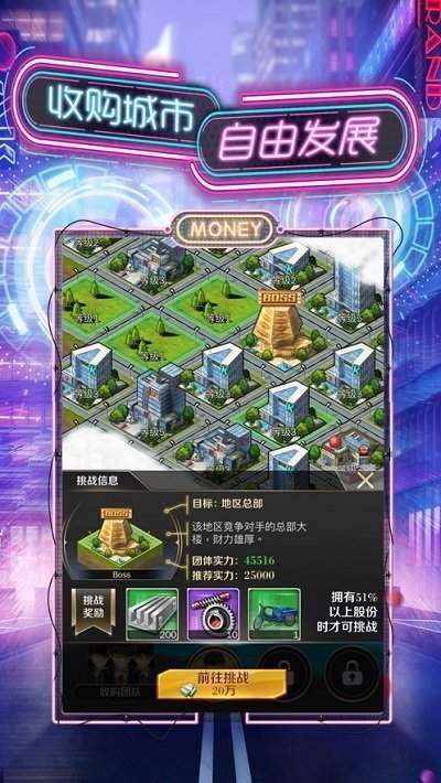 玩家化身投资大佬,商场纵横,体验商业魅力,投资的快感。自由经营企业,利润逐年增长,成为行业领头羊