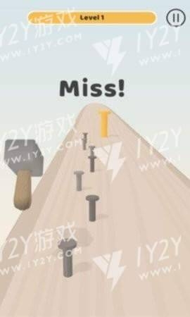 这是一个有趣的游戏。玩家可以通过点击屏幕来使用锤子来敲打钉子。在游戏刚开始时,钉子很小,很容易敲入,但在关卡结束时,钉子会变得很大。你需要敲好几下才能成功敲进去,要把握好方向和力度。