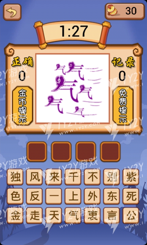 计时模式看图猜成语,根据一副简笔画,把正确的字拼成成语。