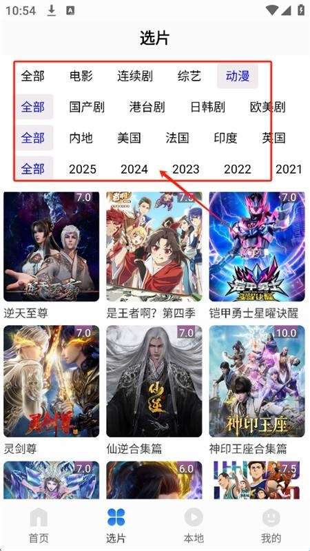 4、在选片分类页面根据影视的类型、时间来选择。