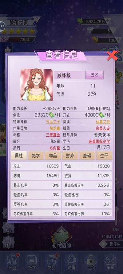 3、深度的角色成长系统,让您能精细规划每位家族成员的职业发展与人生轨迹。
