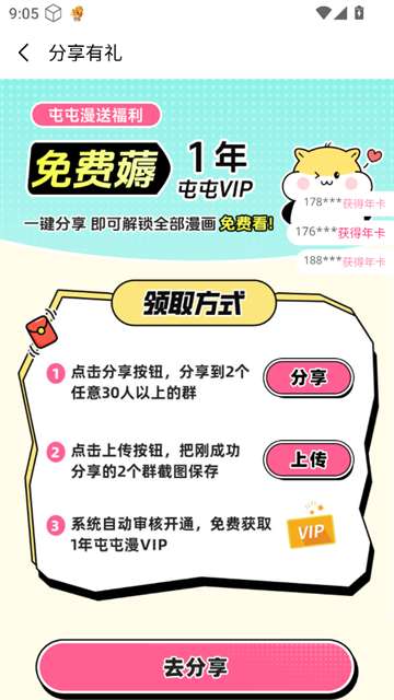 4. 进入后,按要求完成任务,即可获得屯屯漫一年VIP会员资格。