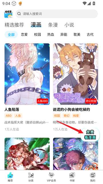 3. 或者点击主页右侧的“免费阅读漫画”。