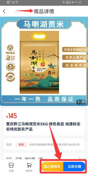 3、在详情页选择加入购物车或直接分期,即可完成购买。