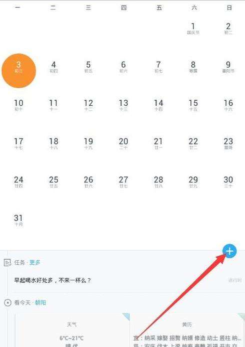1、首先,在手机上安装365日历软件。然后,在日历软件的主界面上,单击“加号”图标,如下图所示,进入日程添加选项。