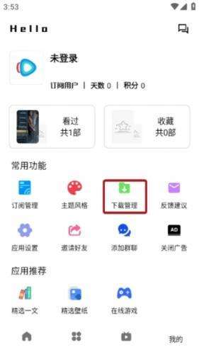 3、开始下载后,我们在我的栏目里找到下载管理功能。