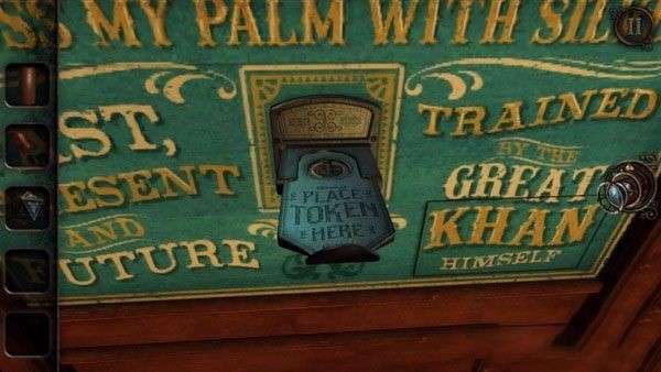 2、走下楼,在这个女巫的占卜机处,拉开下方的架子,会拿到一个圆轮道具,实际上它是一把钥匙。