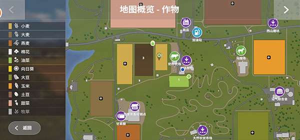 2、能够种植并收割多种作物,包括小麦、大麦、燕麦、油菜、太阳花、大豆、玉米、马铃薯、甜菜以及棉花。
