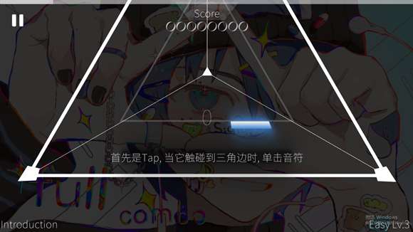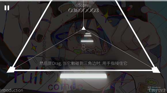 1、首先是Tap,当它触碰到三角边时,单击音符