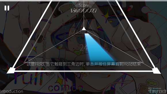 3、这是Hold,当它触碰到三角边时,单击并按住屏幕直到Hold结束