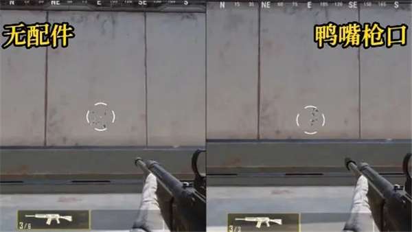 首先是只有喷子能装的鸭嘴枪口,通过画面我们可以看出,装有鸭嘴枪口的喷子所射出的子弹更加集中。