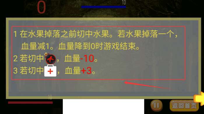 1、进入游戏后,通过手指在屏幕上滑动来实现切割操作,各类水果会不断跳出屏幕,需要快速准确地进行切除。