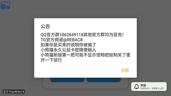 2、进入软件后可以看到公告写明了账号可以随便输入即可。