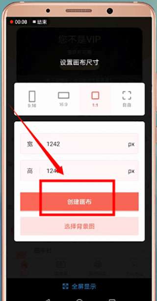 2、可以自定义画布尺寸,也可以选择背景图。我们按照默认的尺寸1242*1242设置;