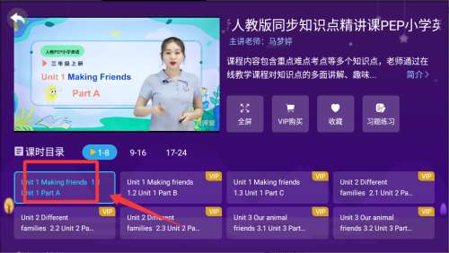 2、在课程中心选择要学习的科目,查看教科书的同步视频课程。
