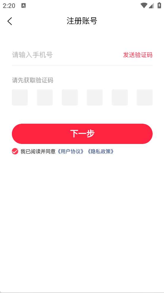 2、输入你的手机号并填入收取到的验证码即可注册账号