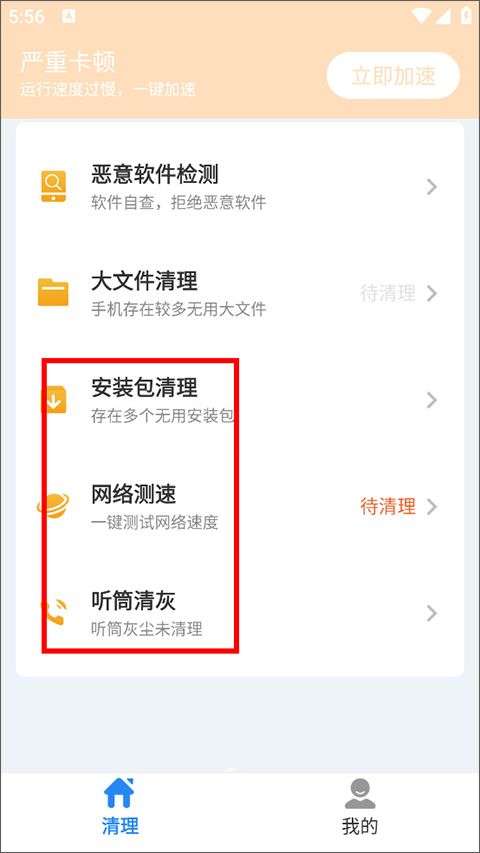 3、此外,用户还可以使用安装包清洁功能检测手机上多个无用的安装包,一键测试网络速度,耳机灰尘检测等。
