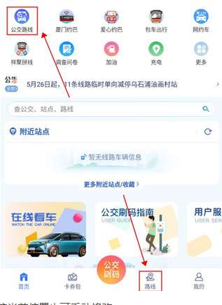 1、打开应用程序,单击上面的“巴士路线”或下面的“路线”。